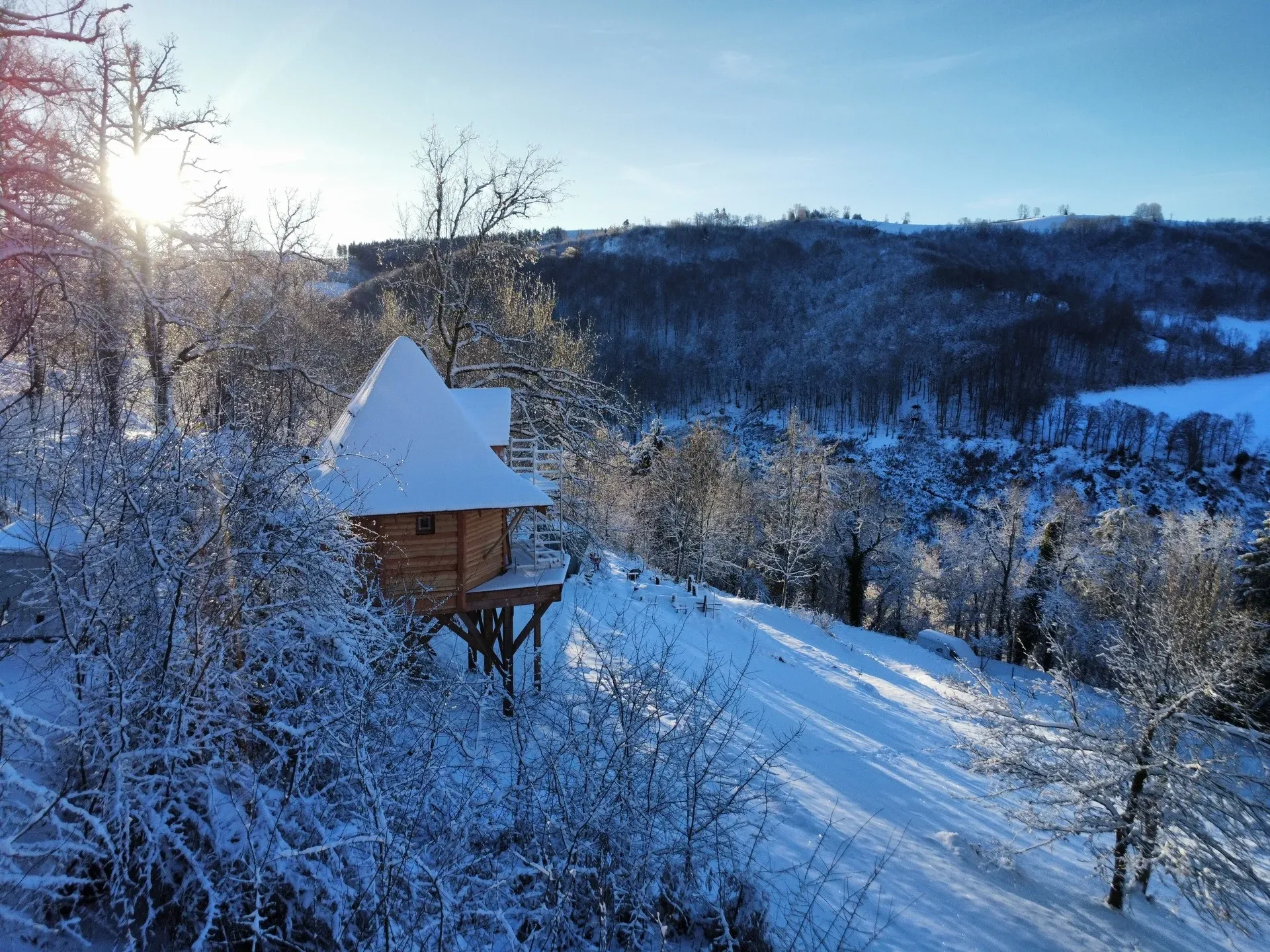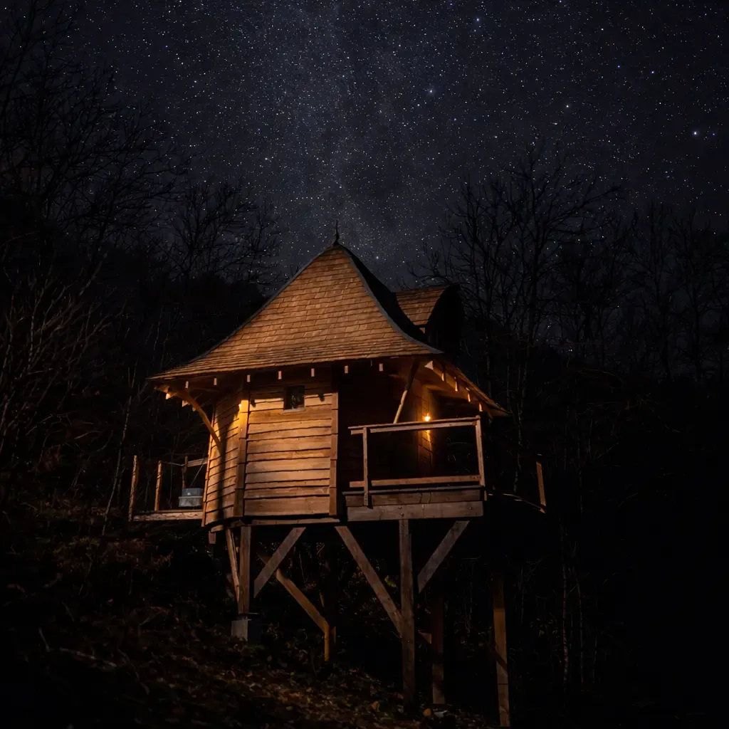 Offrez-vous une location de cabane insolite dans le Cantal, au cœur de l’Auvergne, dans un véritable château en bois perché en pleine nature. Le Château des Havres Verts peut accueillir jusqu’à 5 personnes. Il dispose d’une chambre parentale, d’un espace enfants et d’une tour d’observation avec vue panoramique sur la vallée. Un hébergement idéal pour un séjour en famille en Auvergne ou une escapade romantique en pleine forêt. Le tarif affiché par nuit est pour 2 personnes. Les personnes supplémentaires sont facturées 35 € par nuit et par personne (hors bébé). Le petit-déjeuner est inclus et servi dans la cuisine commune du domaine.